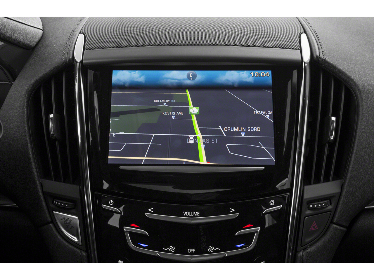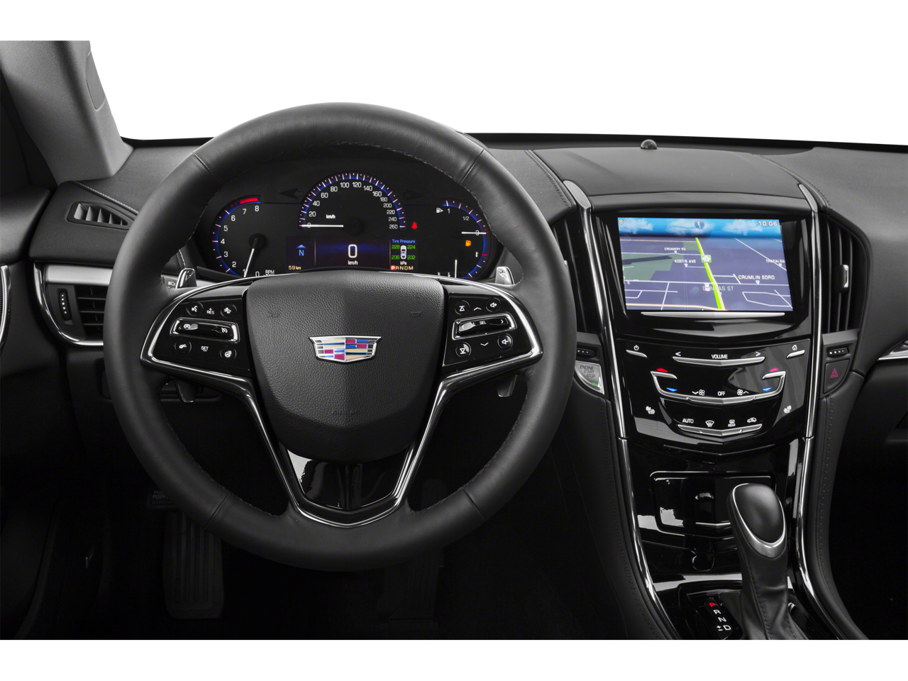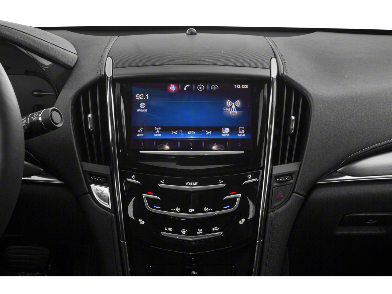- Cadillac CUE Information and Media Control System with Embedded Navigation AM/FM stereo with embedded navigation, 8" color information display, three USB ports, SD card slot, auxiliary input jack and Natural Voice Recognition (Also includes (KI6) 110V power receptacle.)