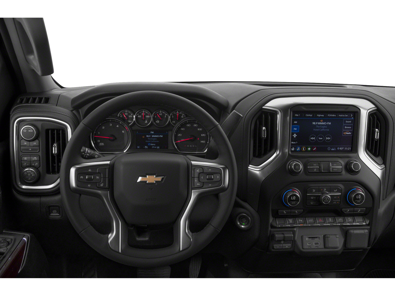- Audio system, Chevrolet Infotainment 3 system, 8" diagonal color touchscreen, AM/FM stereo. Additional features for compatible phones include: Bluetooth® audio streaming for 2 active devices, voice command pass-through to phone, wired Apple CarPlay and Android Auto capable.