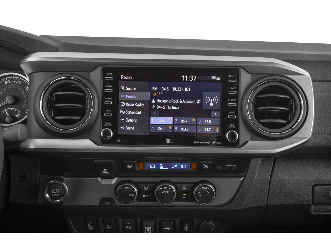 - Radio: Premium JBL Audio w/Dynamic Navigation -inc: Clari-Fi, 6 speakers, subwoofer and amplifier, 8" touchscreen, HD Radio, Dynamic Navigation w/3-year trial, Dynamic POI Search, Dynamic Voice Recognition, hands-free phone capability and music streaming via Bluetooth® wireless technology, Android Auto, Apple CarPlay and Amazon Alexa compatible, SiriusXM w/3-month all access trial and Connected Services (Safety Connect w/1-year trial, Service Connect w/10-year trial, Remote Connect w/1-year trial, Wi-Fi Connect w/up to 2 GB within 3-month trial and Destination Assist w/1-year trial), See toyota.com/audio-multimedia for details
